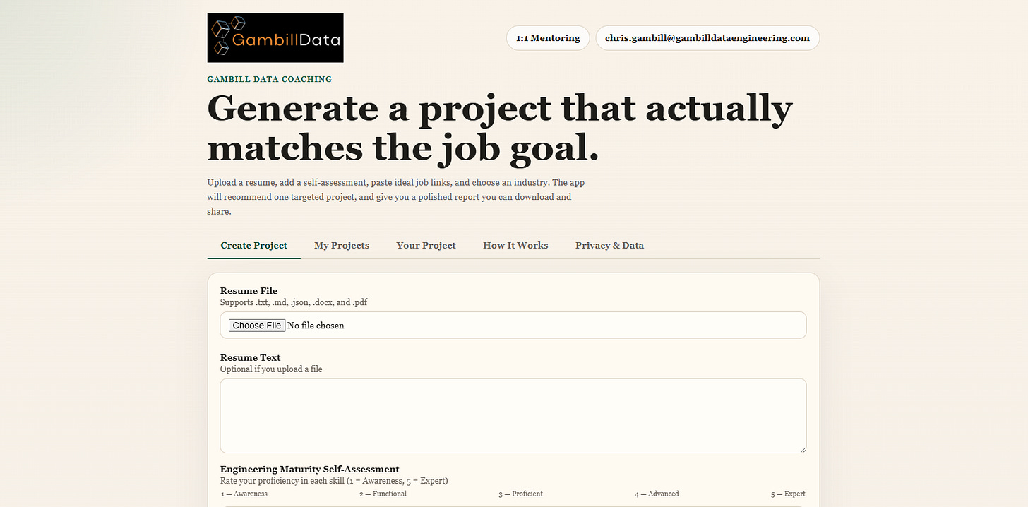 โWe are uniquely positioned to transition you from writing basic scripts to architecting governed, scalable data assets. Upload your resume, rank your skills, and input your target job link. The engine will deliver a custom, end-to-end data engineering blueprint tailored to your career trajectory.